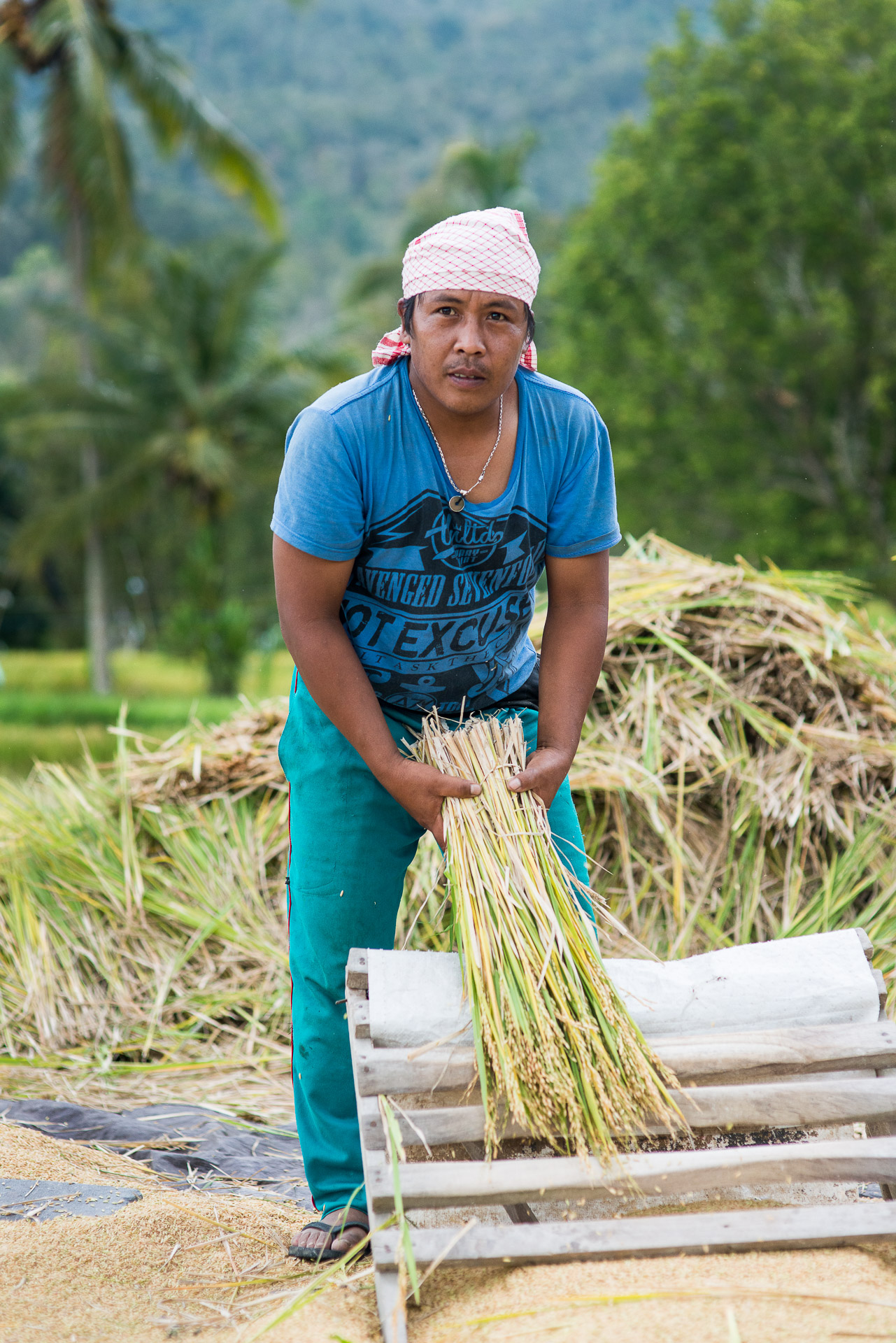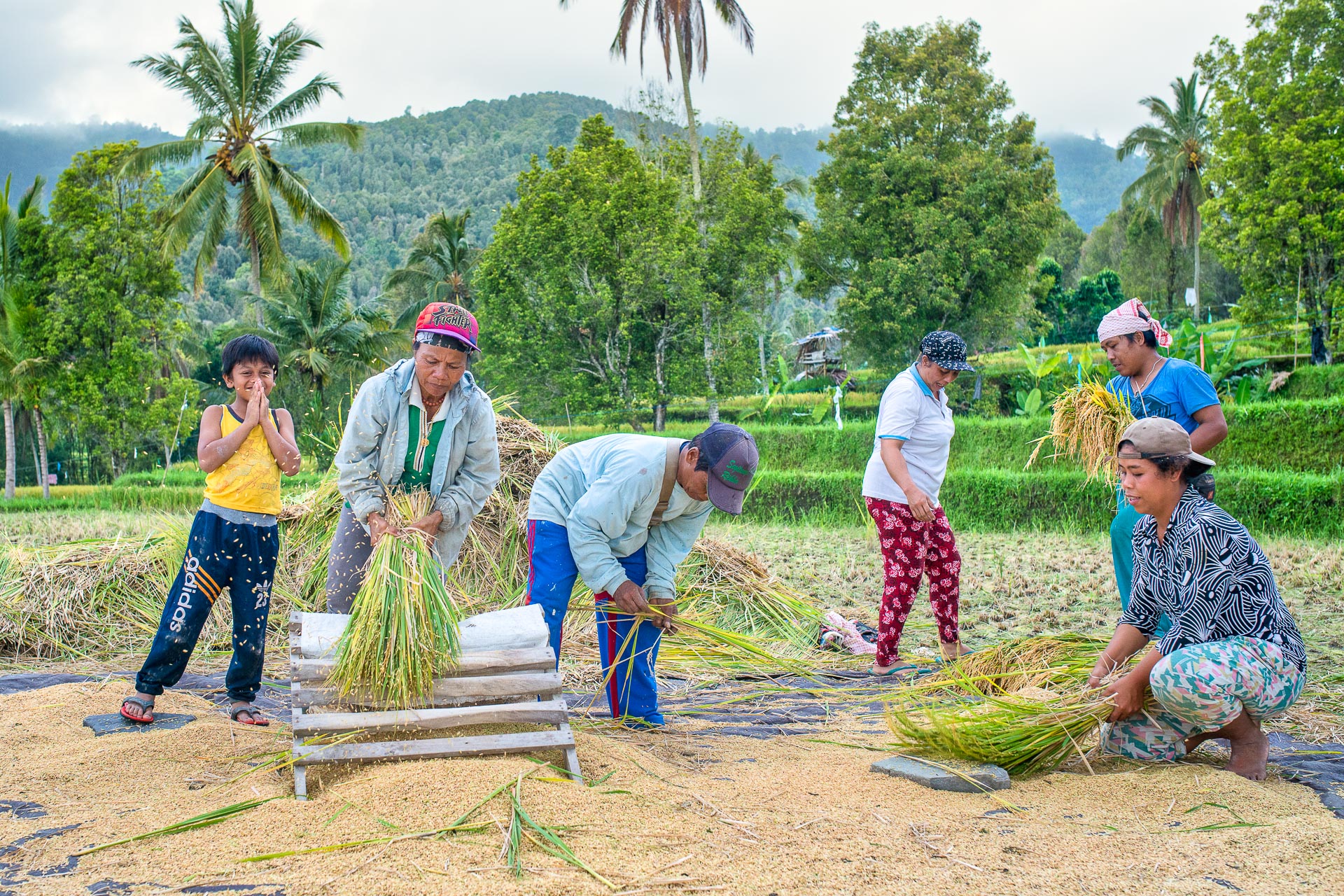 En se promenant dans les rizières, voire parfois à travers celles-ci, loin du circuit touristique classique, on fait souvent de belles rencontres. C'est comme cela que j'ai été invité par une famille pour les voir travailler, j'ai même travaillé avec eux ! J'ai ensuite demandé si je pouvais prendre quelques photos et ils ont accepté avec plaisir. C'était un très beau moment de partage. Voici quelques portraits que j'en ai pris.