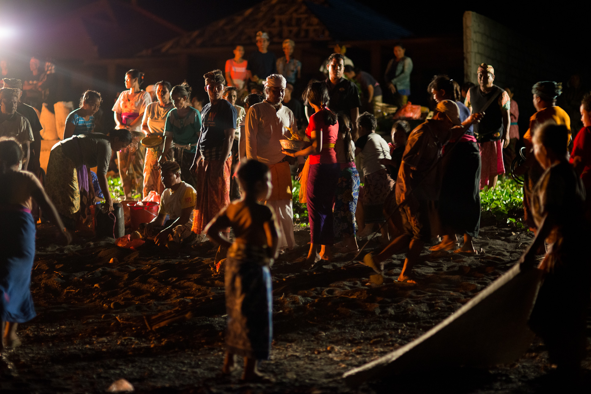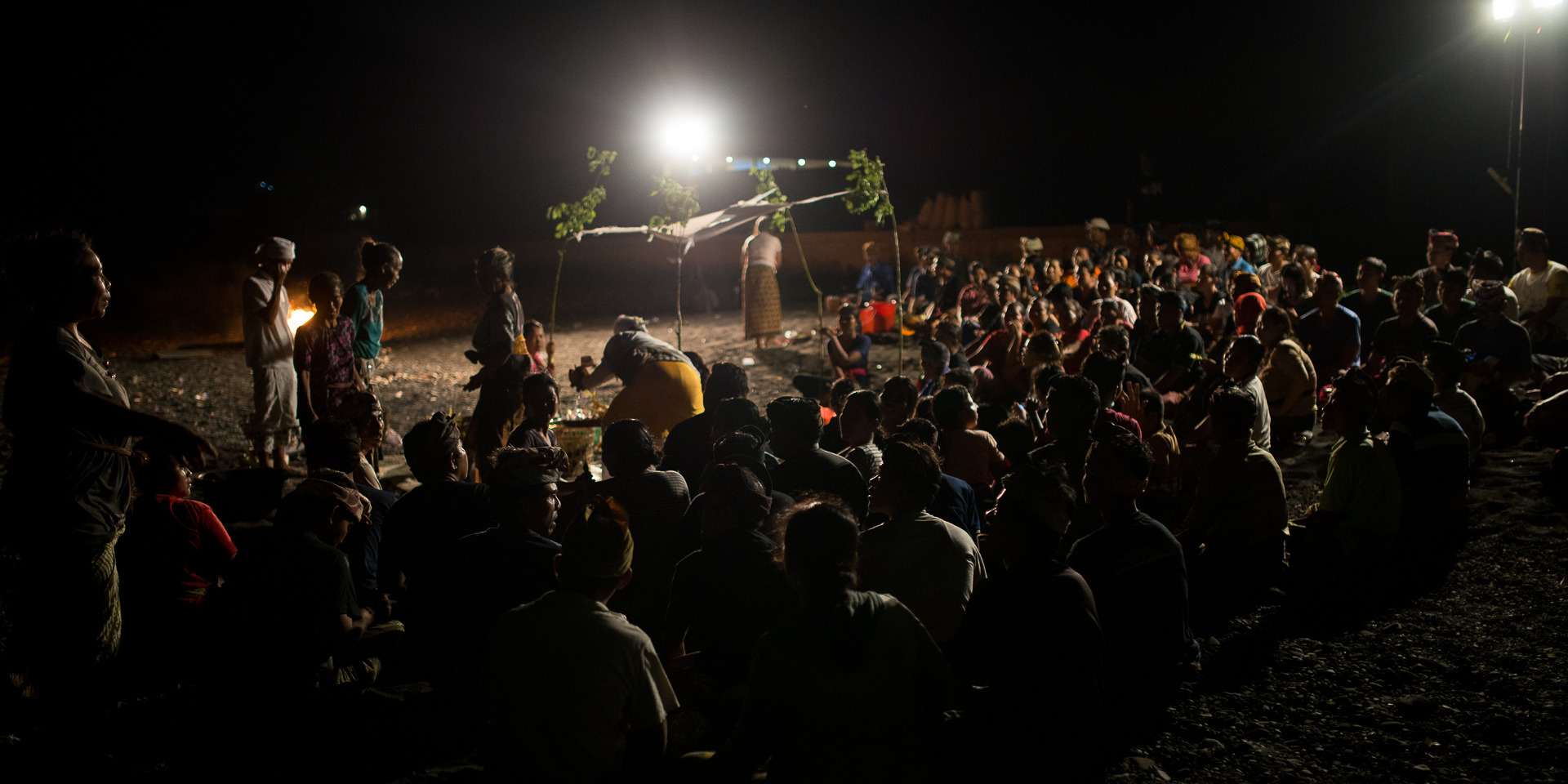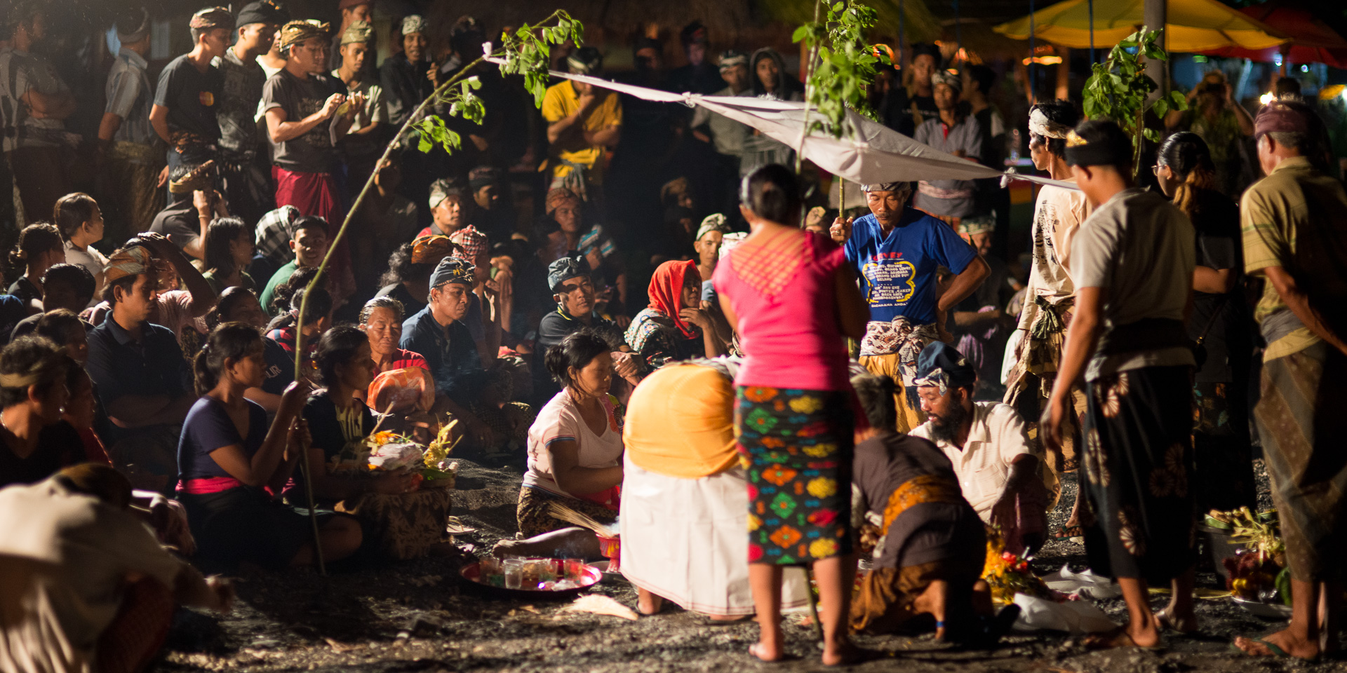 Les cérémonies sont très importantes dans la culture balinaise et en marchant le long de la plage au coucher du soleil, je suis passé devant un groupe de locaux assis là et regardant un grand feu face à la mer. Par curiosité, je me suis assis avec eux, et j'ai vite réalisé qu'il y avait toute une communauté autour de moi, peut-être 100 personnes. J'ai commencé à prendre quelques photos mais je ne voulais pas être impoli ou irrespectueux concernant la cérémonie alors j'ai essayé de trouver quelqu'un parlant anglais autour de moi pour avoir plus d'informations sur ce qui se passait. Je trouve enfin quelqu'un capable de m'expliquer ce à quoi j'étais témoin. C'était la crémation d'un membre de la communauté. Je partage avec vous quelques clichés intimistes que j'ai pu prendre dans le respect de la cérémonie et de la communauté.