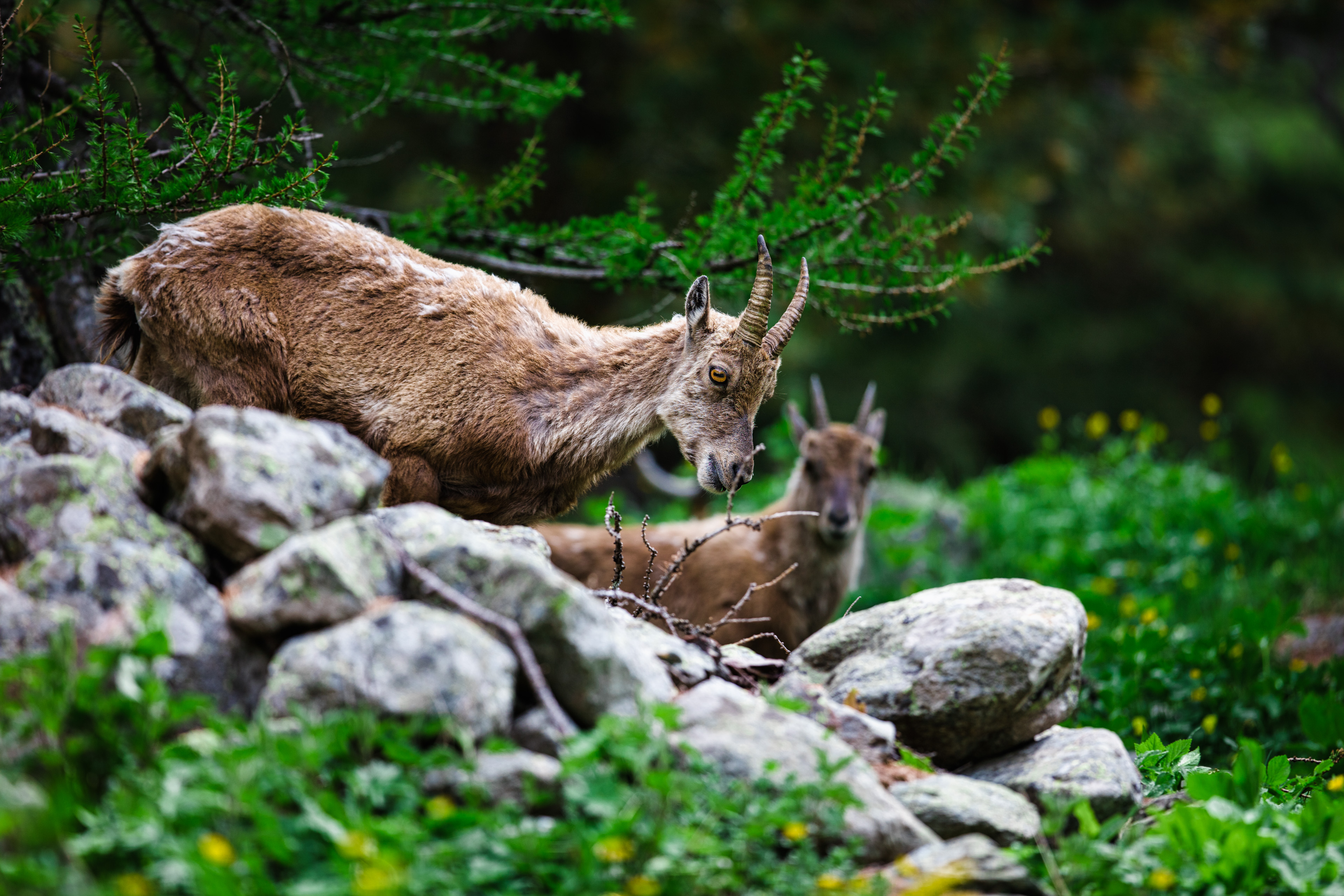 Dans les sommets majestueux du Massif du Mercantour, on peut découvrir l'une des espèces les plus emblématiques des montagnes européennes : le bouquetin. Fascinants par leur adaptabilité et leur grâce, ces chèvres des rochers évoluent avec agilité dans les environnements escarpés et rocailleux de la région. Vivant en petits groupes familiaux, les bouquetins offrent aux observateurs une fenêtre sur la vie sauvage des hauteurs, avec leurs interactions sociales et leur recherche incessante de pâturages alpins. Réintroduits avec succès dans la région après avoir disparu au début du XXe siècle, les bouquetins du Mercantour sont aujourd'hui un symbole de la résilience de la nature et de l'engagement envers la préservation de la biodiversité.