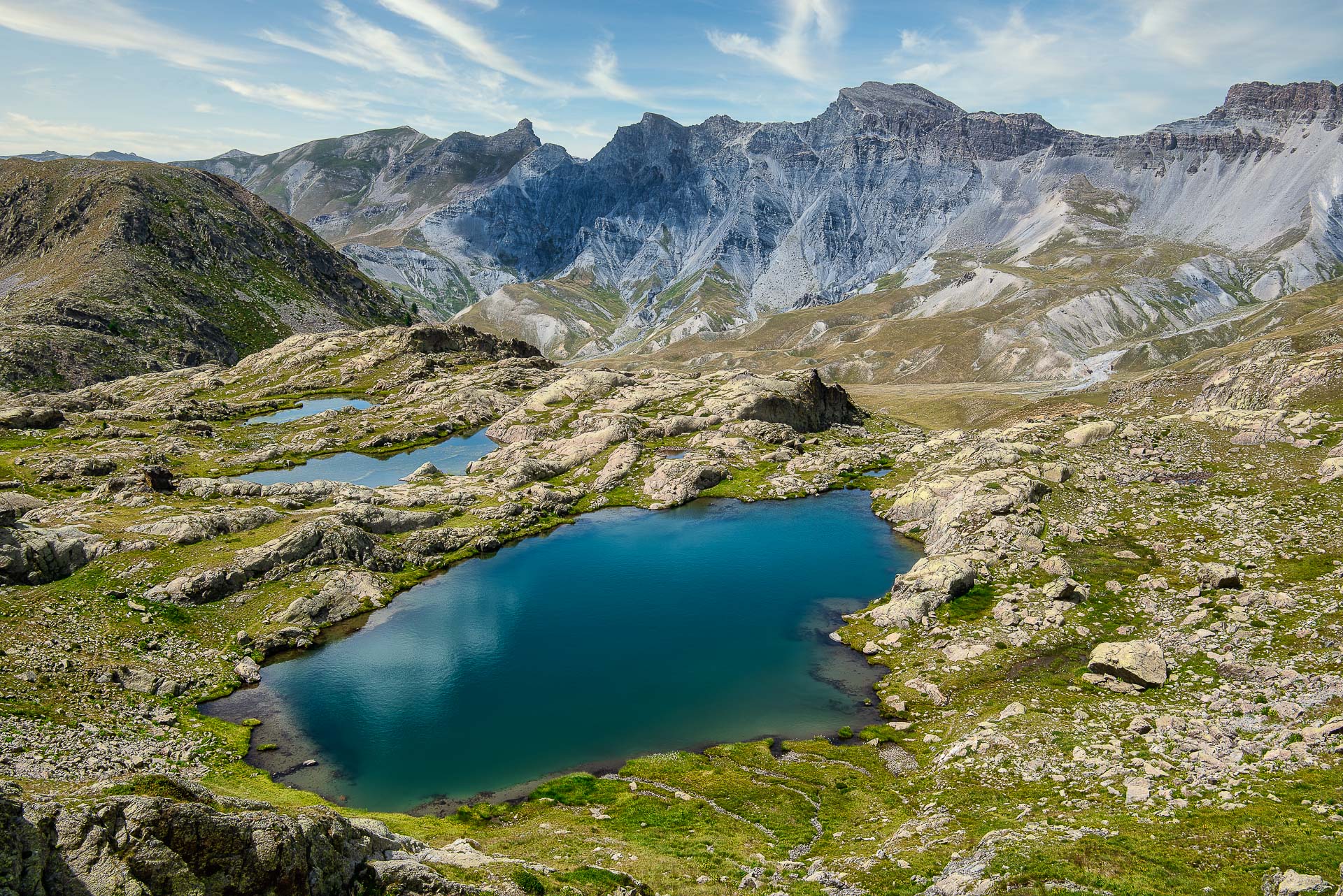 Les lacs de Vens, joyaux cristallins nichés dans les hauteurs majestueuses du massif du Mercantour, s'étendent en une succession enchanteresse de cinq étendues d'eau principales, embrassées par des sommets escarpés. Situés entre les altitudes impressionnantes de 2 325 mètres et 2 278 mètres, ces lacs offrent un spectacle naturel d'une rare beauté, invitant les aventuriers à découvrir leur splendeur préservée.