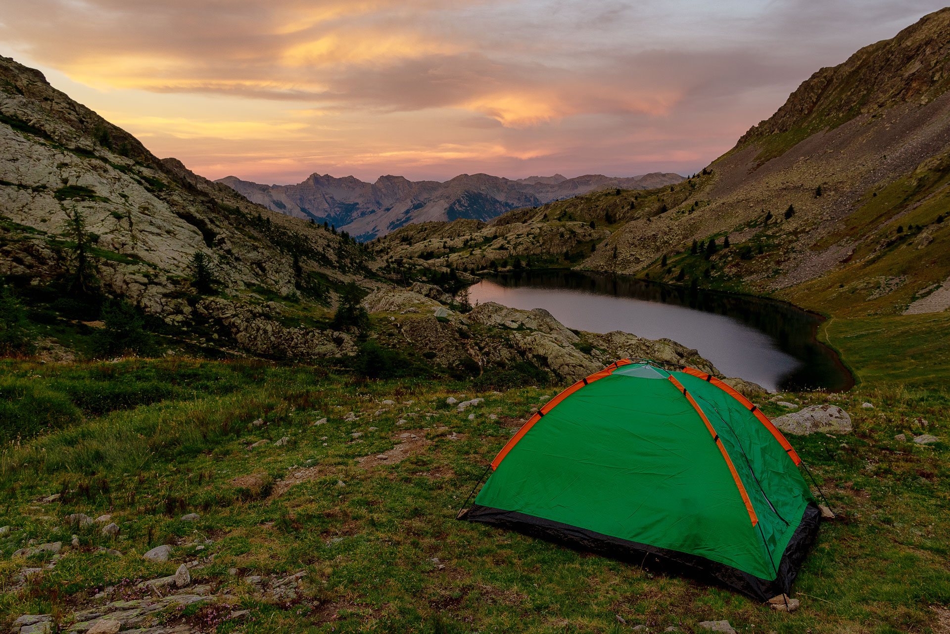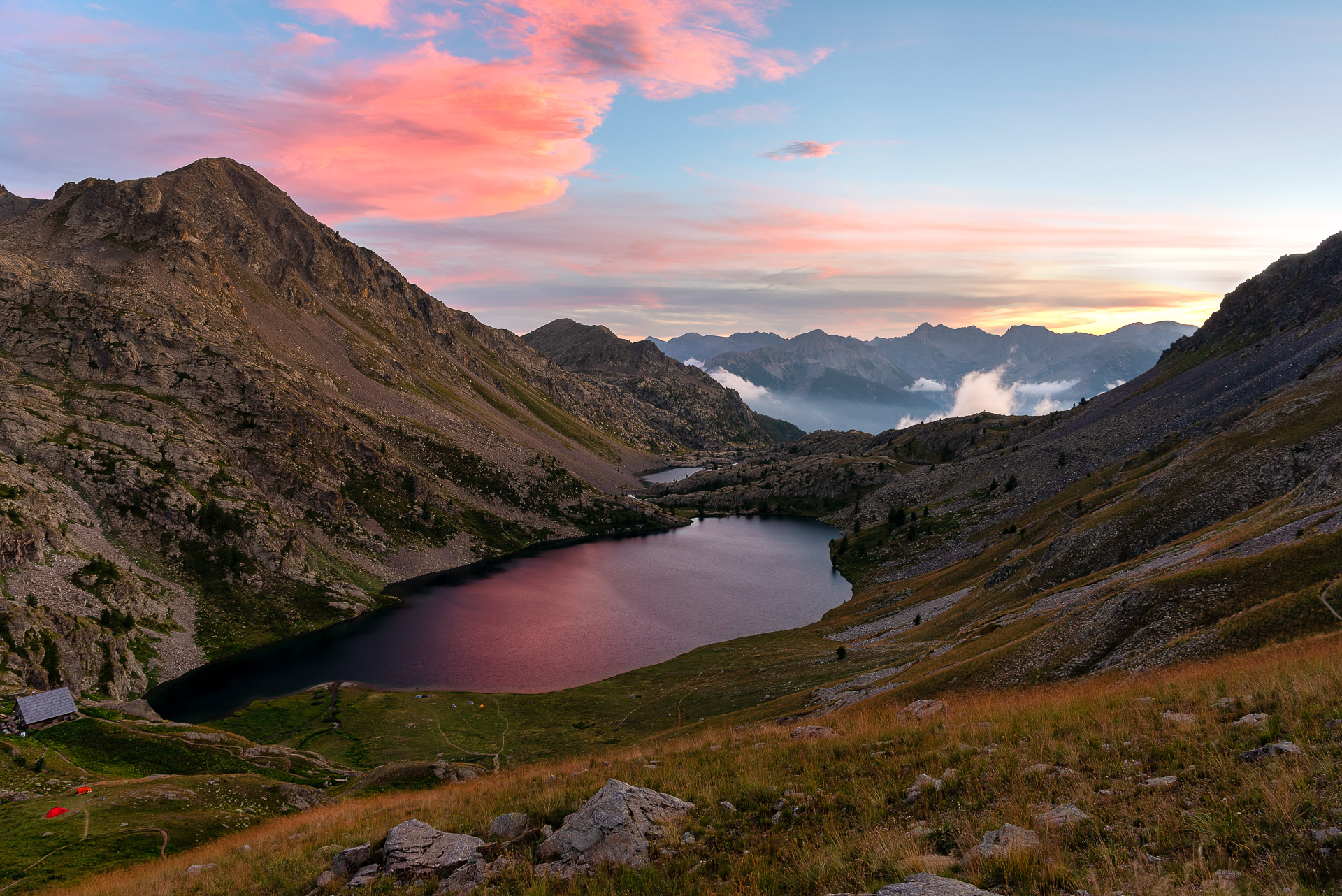 Nous avons poursuivi notre ascension pendant quelques heures avant d'atteindre les lacs de Vens. La vue depuis le sommet de la montagne offre un panorama à couper le souffle, que vous garderez gravé dans votre mémoire. Nous avons eu la chance de camper sur place, nous permettant ainsi d'admirer un magnifique coucher de soleil avant de nous endormir. Au réveil, nous avons été accueillis par un lever de soleil flamboyant avant de reprendre le chemin du retour à travers les montagnes jusqu'au Pra