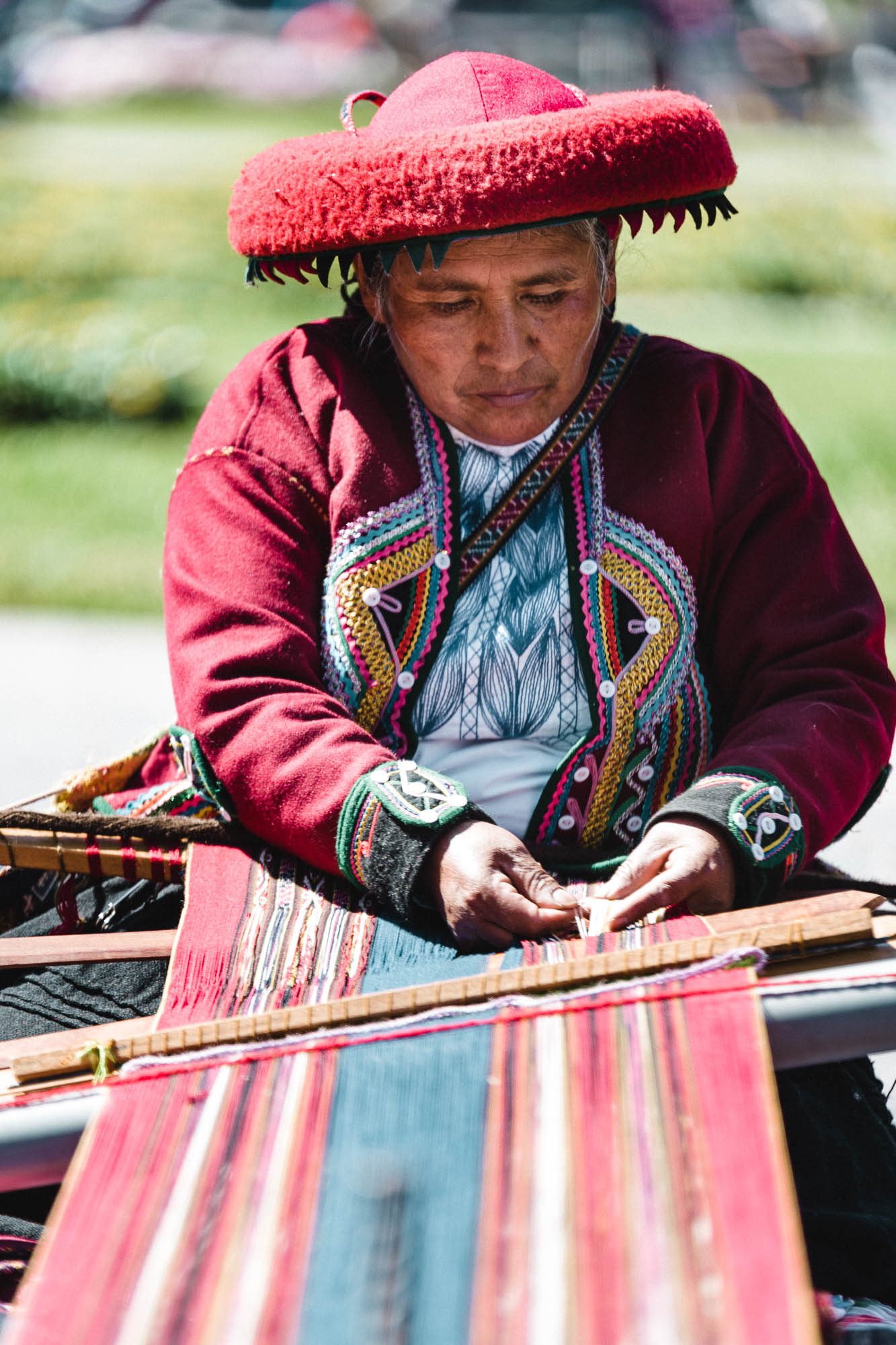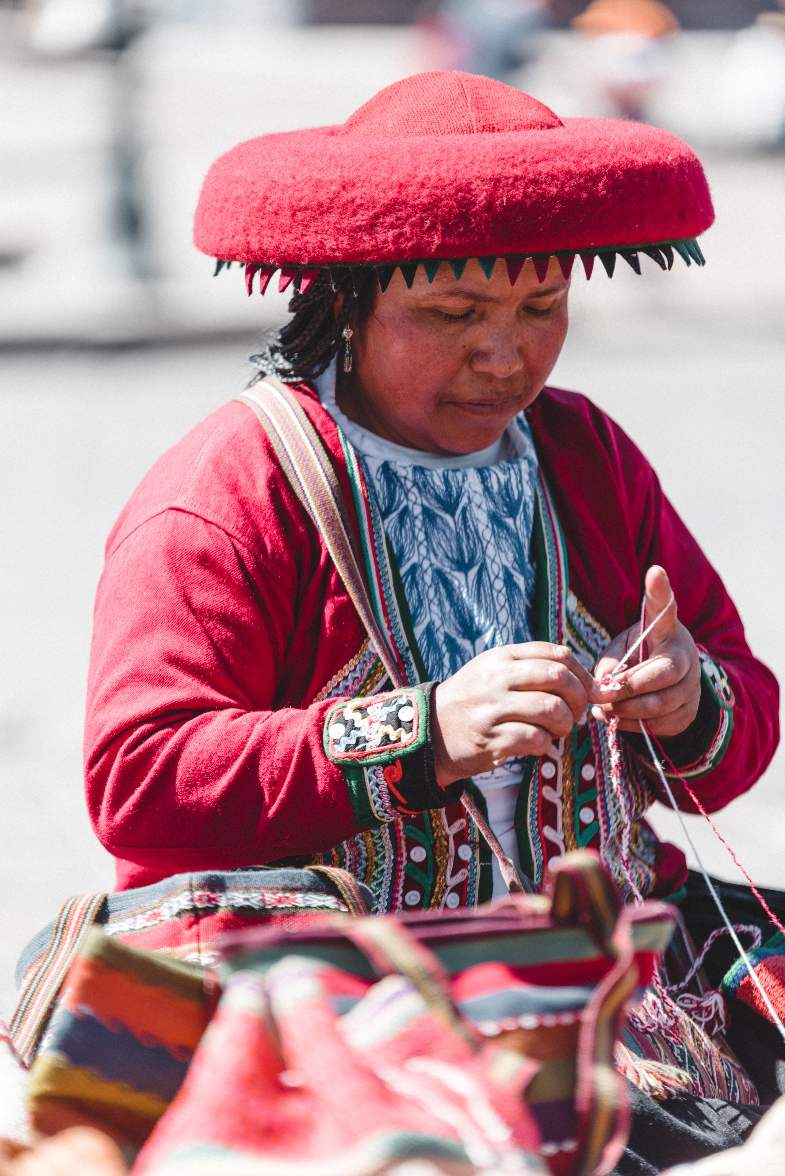 Les femmes de Chinchero sont souvent les gardiennes de cet art millénaire, maîtrisant l'art complexe du tissage à la main depuis leur plus jeune âge. Elles utilisent des métiers à tisser rudimentaires, souvent fabriqués à partir de bois et de cordes, pour créer des pièces textiles d'une beauté exceptionnelle. Les motifs et les symboles présents dans leurs tissages sont souvent inspirés de la nature environnante, des motifs géométriques traditionnels ou des récits mythologiques incas. C'est après avoir vu leur artisanat sur la Plaza des Armas a Cusco où elles exposent une fois par an que j'ai pu me rendre dans leur village.