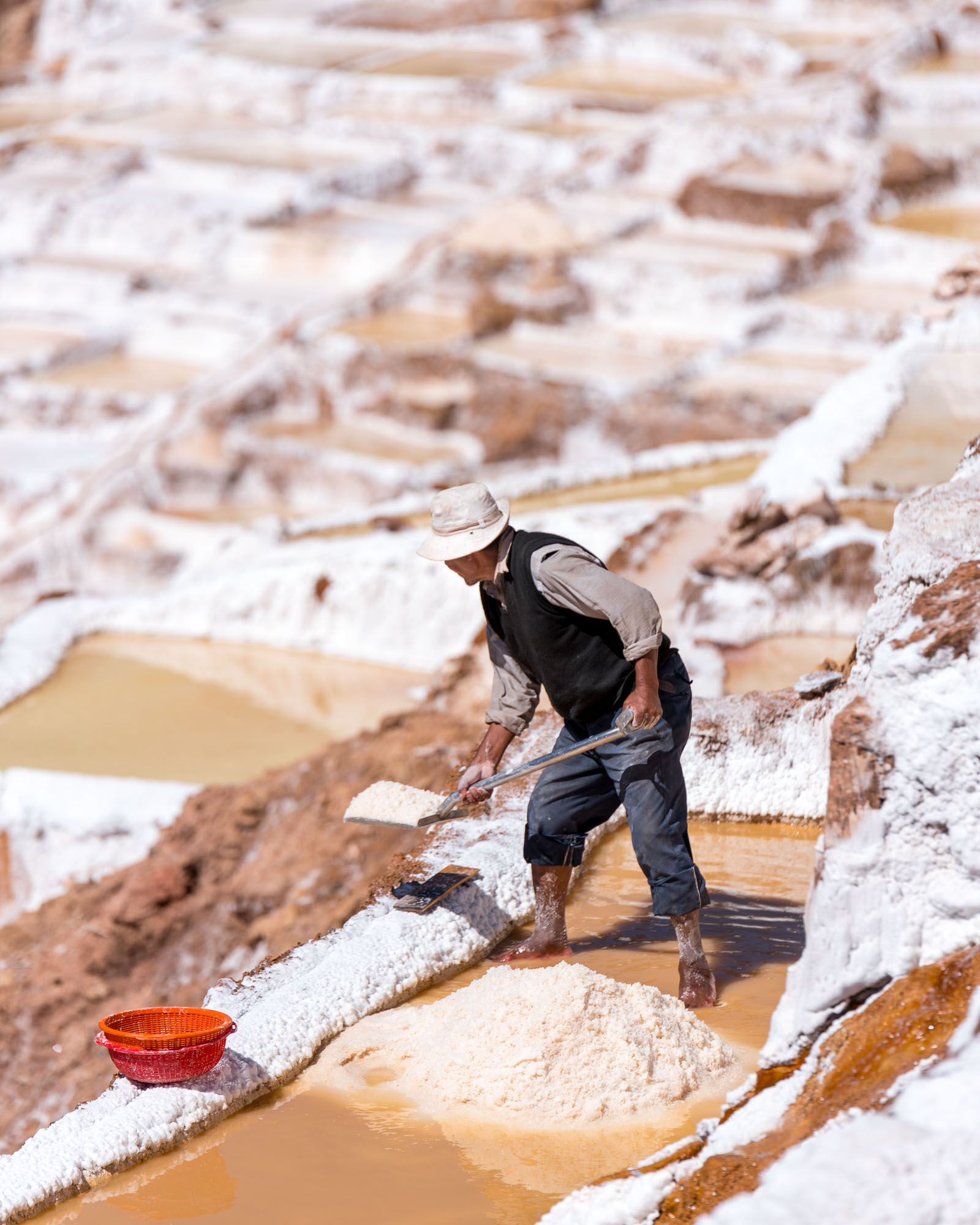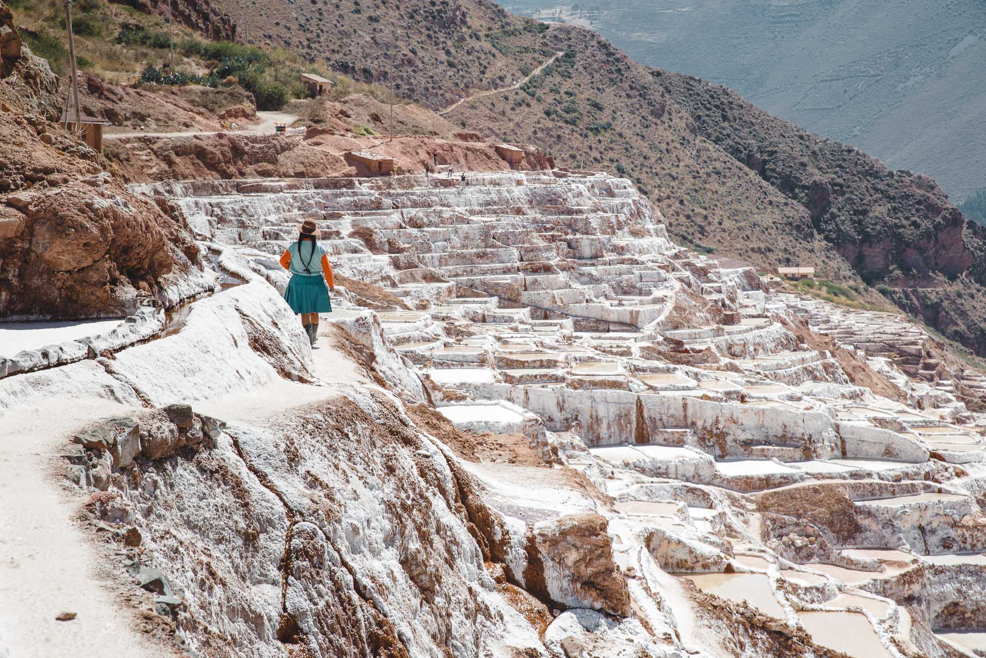 Les Salineras de Maras située près de la Vallée Sacrée, dans la région de Cusco sont des salines constituées de milliers de bassins de sel en terrasse, exploités depuis l'époque pré-inca. Les familles locales recueillent le sel en évaporant l'eau salée qui jaillit naturellement de la montagne environnante.