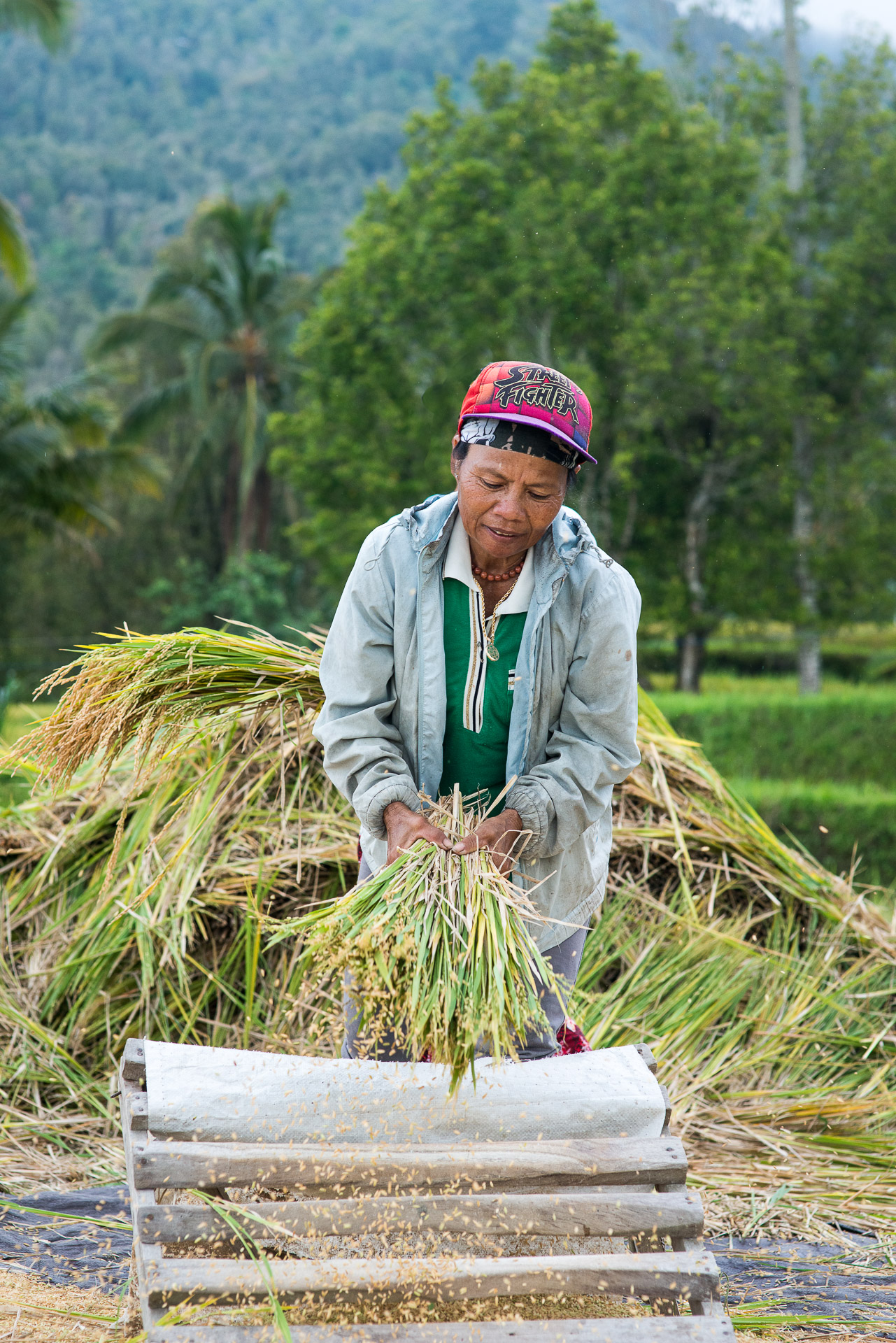 En se promenant dans les rizières, voire parfois à travers celles-ci, loin du circuit touristique classique, on fait souvent de belles rencontres. C'est comme cela que j'ai été invité par une famille pour les voir travailler, j'ai même travaillé avec eux ! J'ai ensuite demandé si je pouvais prendre quelques photos et ils ont accepté avec plaisir. C'était un très beau moment de partage. Voici quelques portraits que j'en ai pris.