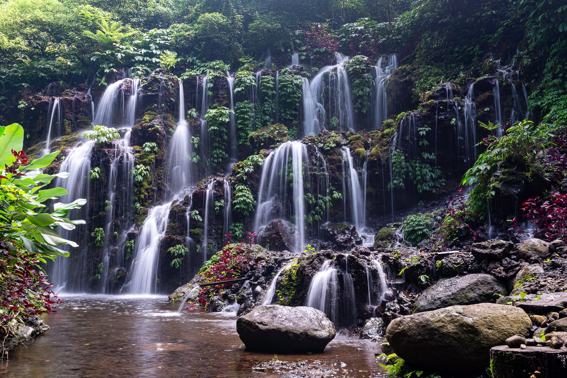En s'aventurant dans les rizières, il n'est pas impossible de finir dans les montagne où se cachent les plus belles cascades. Vous les trouverez dans les forêts tropicales luxuriantes et les profondes vallées montagneuses des hauts plateaux du centre de l’île. Elles font partie des excellents sites à ajouter à votre liste d’activités aventureuses à Bali. La plupart se trouvent au bout de routes panoramiques, nécessitant généralement des randonnées le long de criques décousues, et vous devrez parfois traverser des ponts en bois et descendre des série de marches rocheuses interminable. Dès leur découverte, ces cascades populaires de Bali vous récompenseront par une vrai expériences immersives. Vous pourrez piquer une tête dans les bassins de galets sous les chutes pour une pause apaisante. Certaines des meilleures cascades de Bali vous permettent d'admirer leurs vues magnifiques depuis leur base environnante ou depuis le sommet des collines adjacentes.