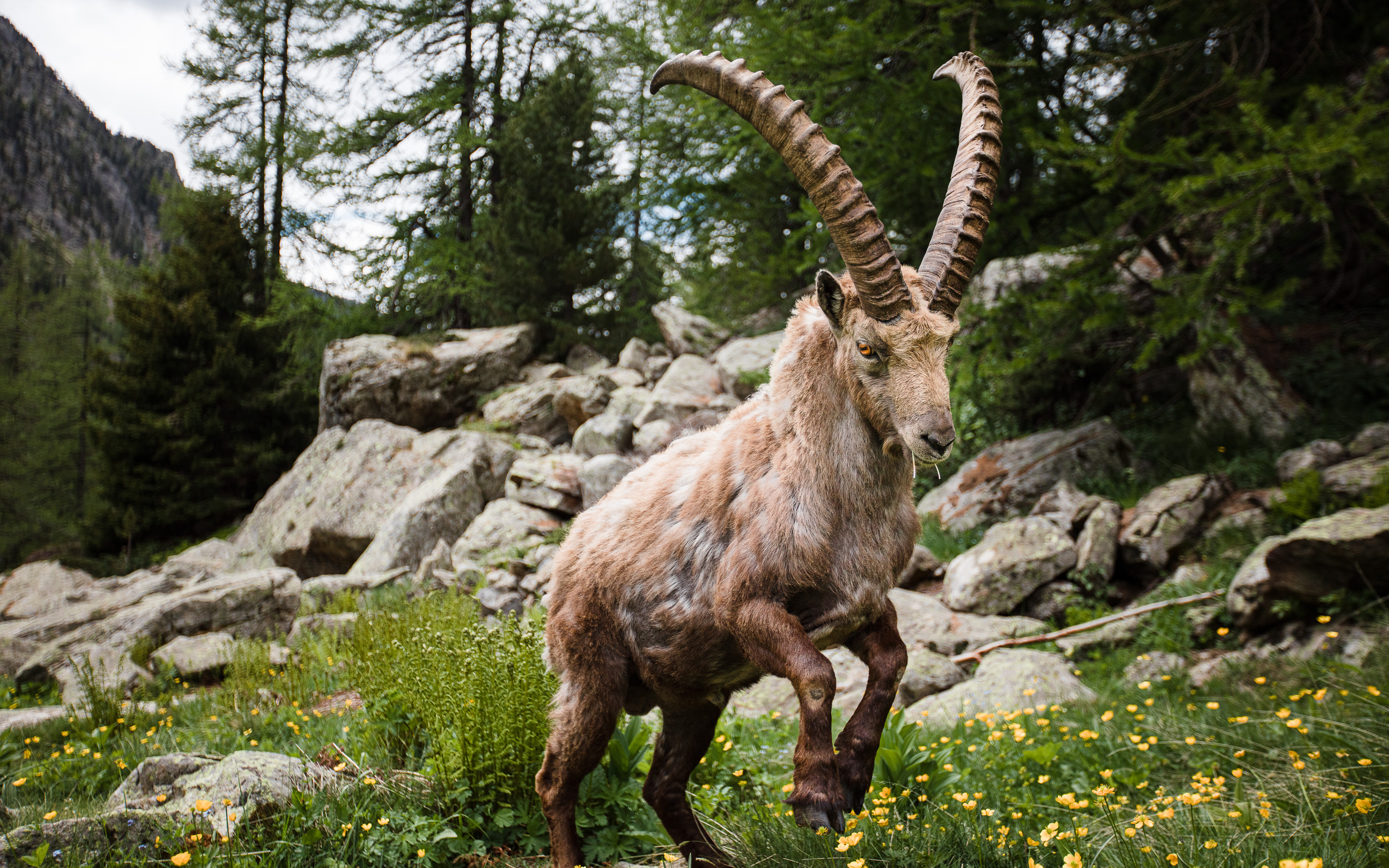 Dans les sommets majestueux du Massif du Mercantour, on peut découvrir l'une des espèces les plus emblématiques des montagnes européennes : le bouquetin. Fascinants par leur adaptabilité et leur grâce, ces chèvres des rochers évoluent avec agilité dans les environnements escarpés et rocailleux de la région. Vivant en petits groupes familiaux, les bouquetins offrent aux observateurs une fenêtre sur la vie sauvage des hauteurs, avec leurs interactions sociales et leur recherche incessante de pâturages alpins. Réintroduits avec succès dans la région après avoir disparu au début du XXe siècle, les bouquetins du Mercantour sont aujourd'hui un symbole de la résilience de la nature et de l'engagement envers la préservation de la biodiversité.
