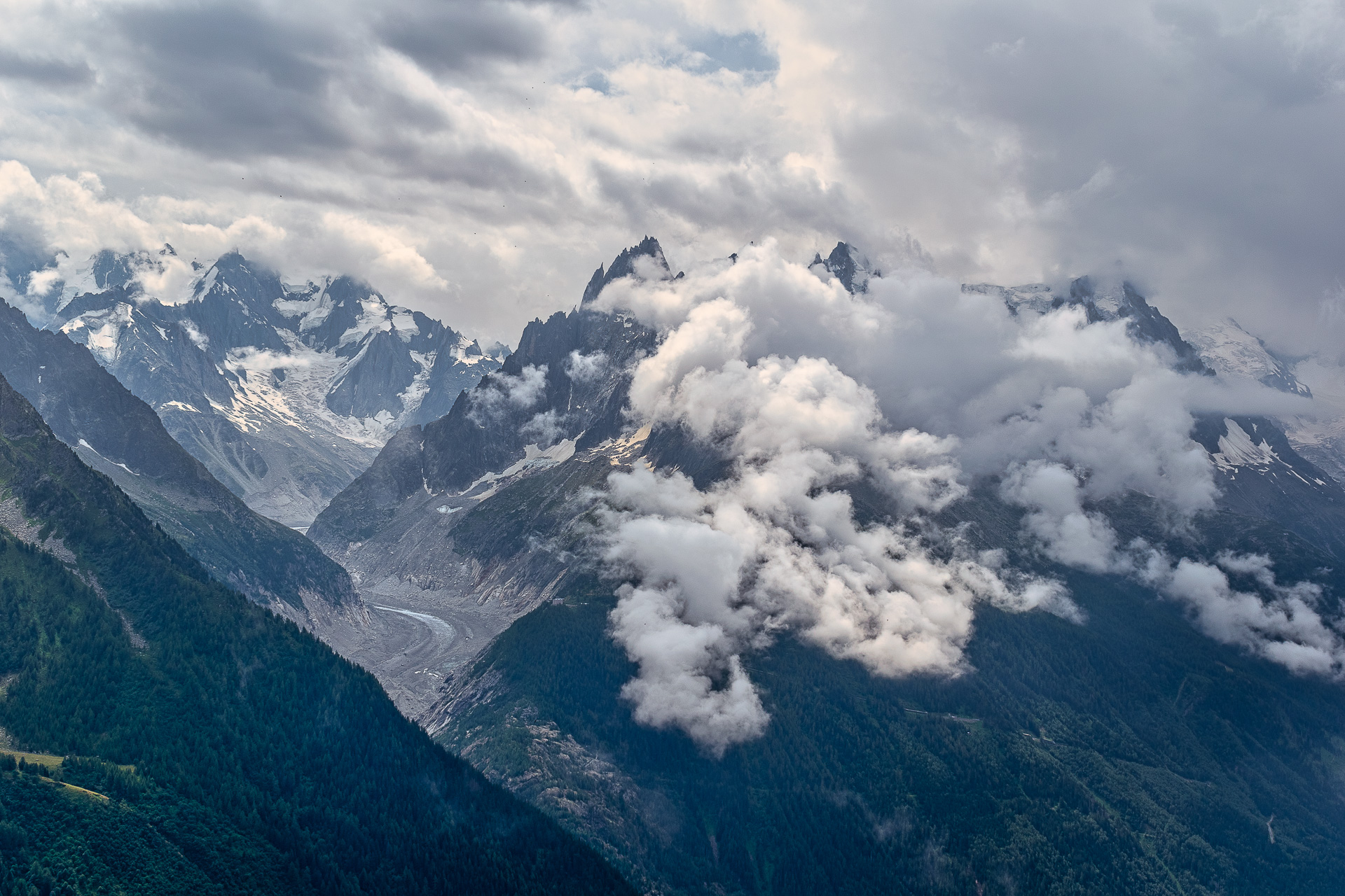 Besoin de me vider l'esprit, j'ai rejoint quelques amis à Chamonix pour un week-end de randonnée. Nous avons eu un temps incroyablement nuageux avec une vue incroyable sur le plus grand glacier de France, la Mer de Glace.