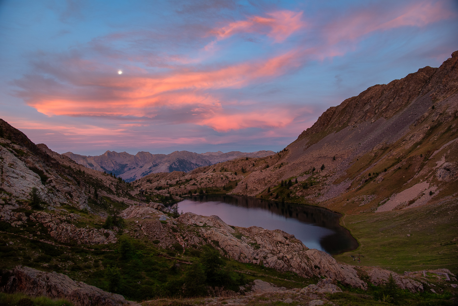 Nous avons poursuivi notre ascension pendant quelques heures avant d'atteindre les lacs de Vens. La vue depuis le sommet de la montagne offre un panorama à couper le souffle, que vous garderez gravé dans votre mémoire. Nous avons eu la chance de camper sur place, nous permettant ainsi d'admirer un magnifique coucher de soleil avant de nous endormir. Au réveil, nous avons été accueillis par un lever de soleil flamboyant avant de reprendre le chemin du retour à travers les montagnes jusqu'au Pra