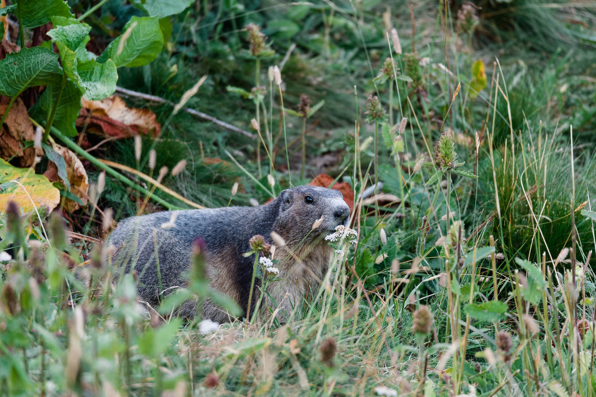 Les époustouflants lacs du Morgon font face au versant italien des montagnes. Bien sûr, cela a demandé du temps et de la patience, mais nous avons eu la chance d'apercevoir quelques marmottes avant qu'elles ne disparaissent dans leur terrier.