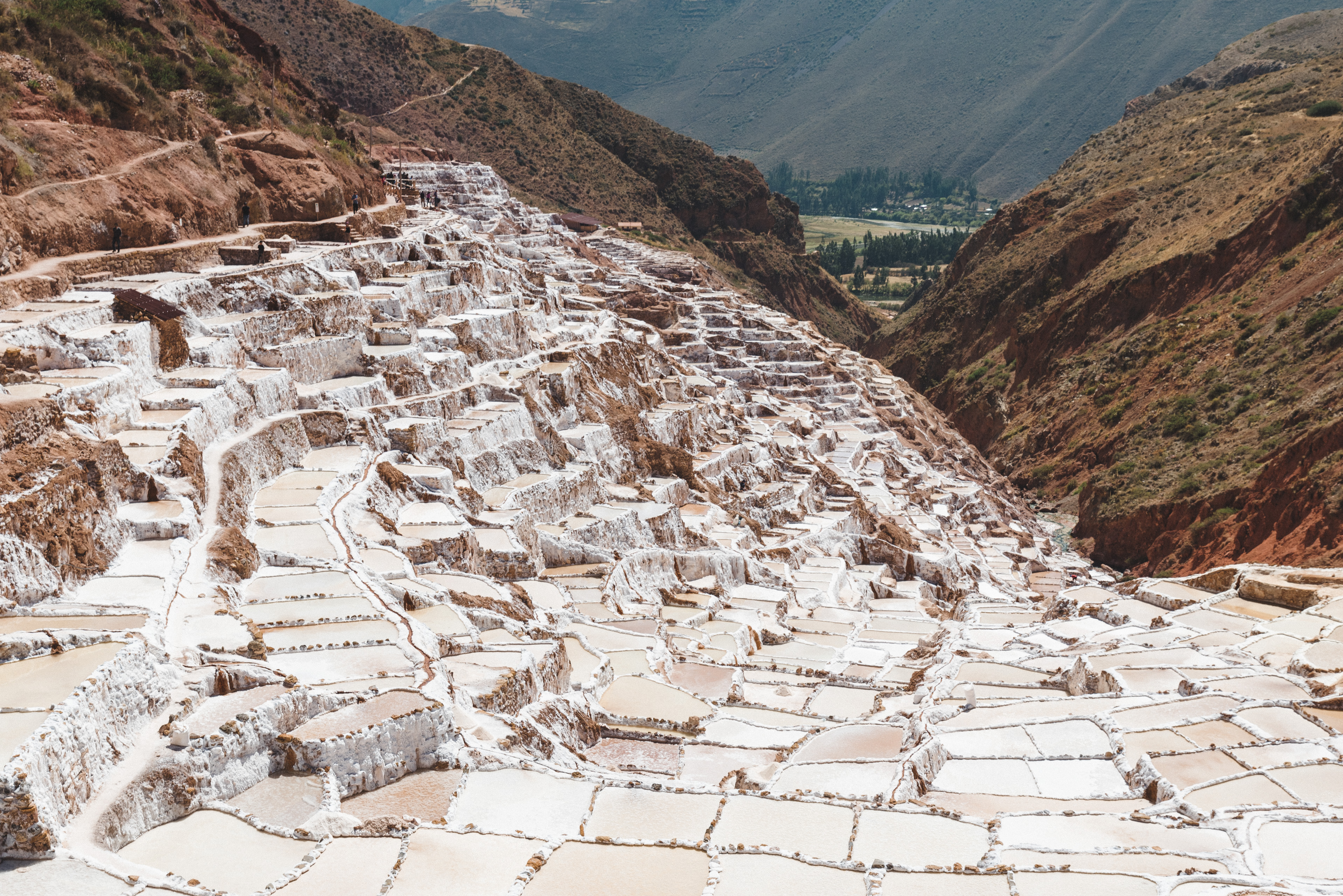Les Salineras de Maras située près de la Vallée Sacrée, dans la région de Cusco sont des salines constituées de milliers de bassins de sel en terrasse, exploités depuis l'époque pré-inca. Les familles locales recueillent le sel en évaporant l'eau salée qui jaillit naturellement de la montagne environnante.